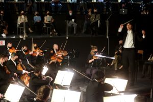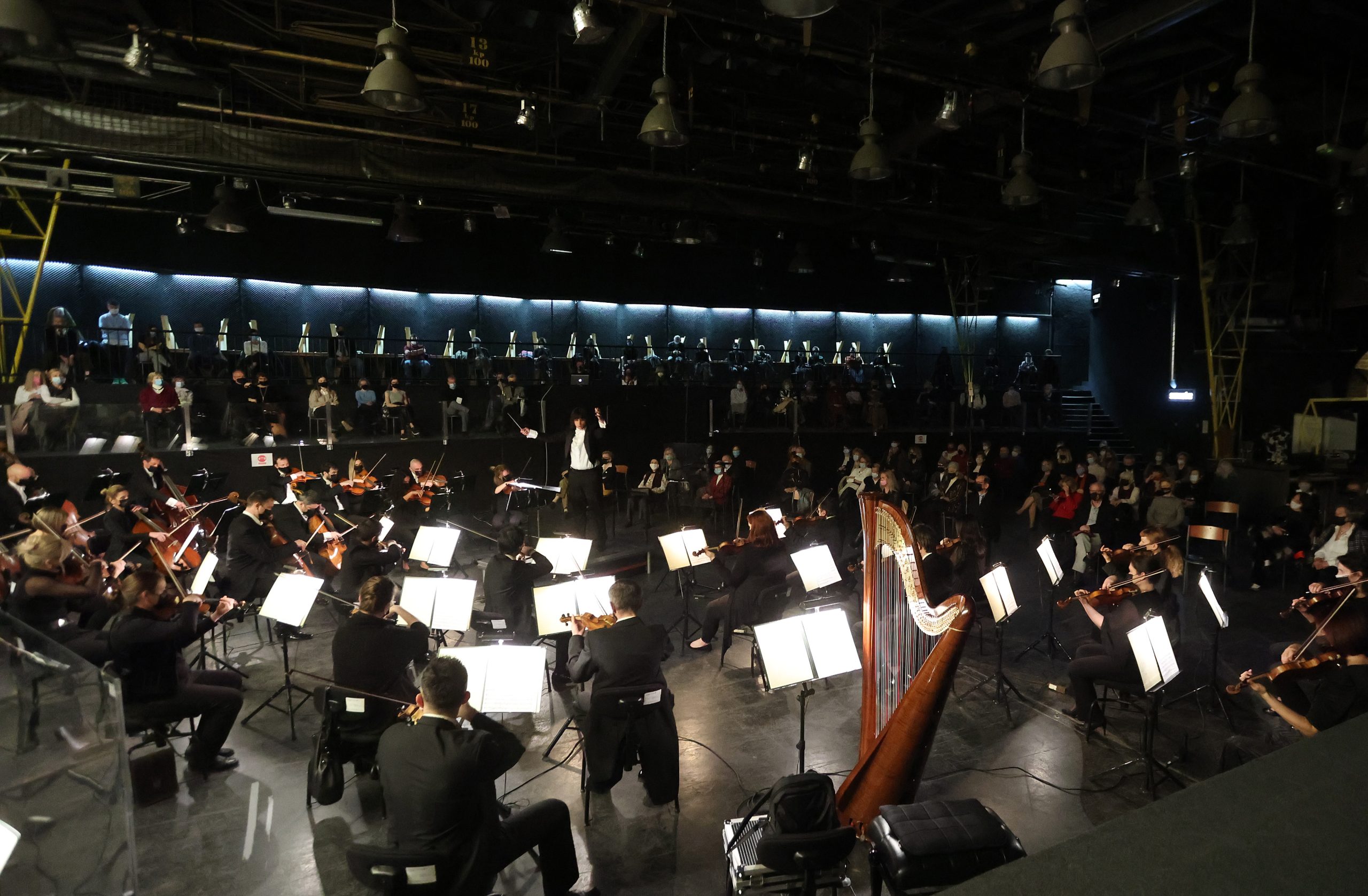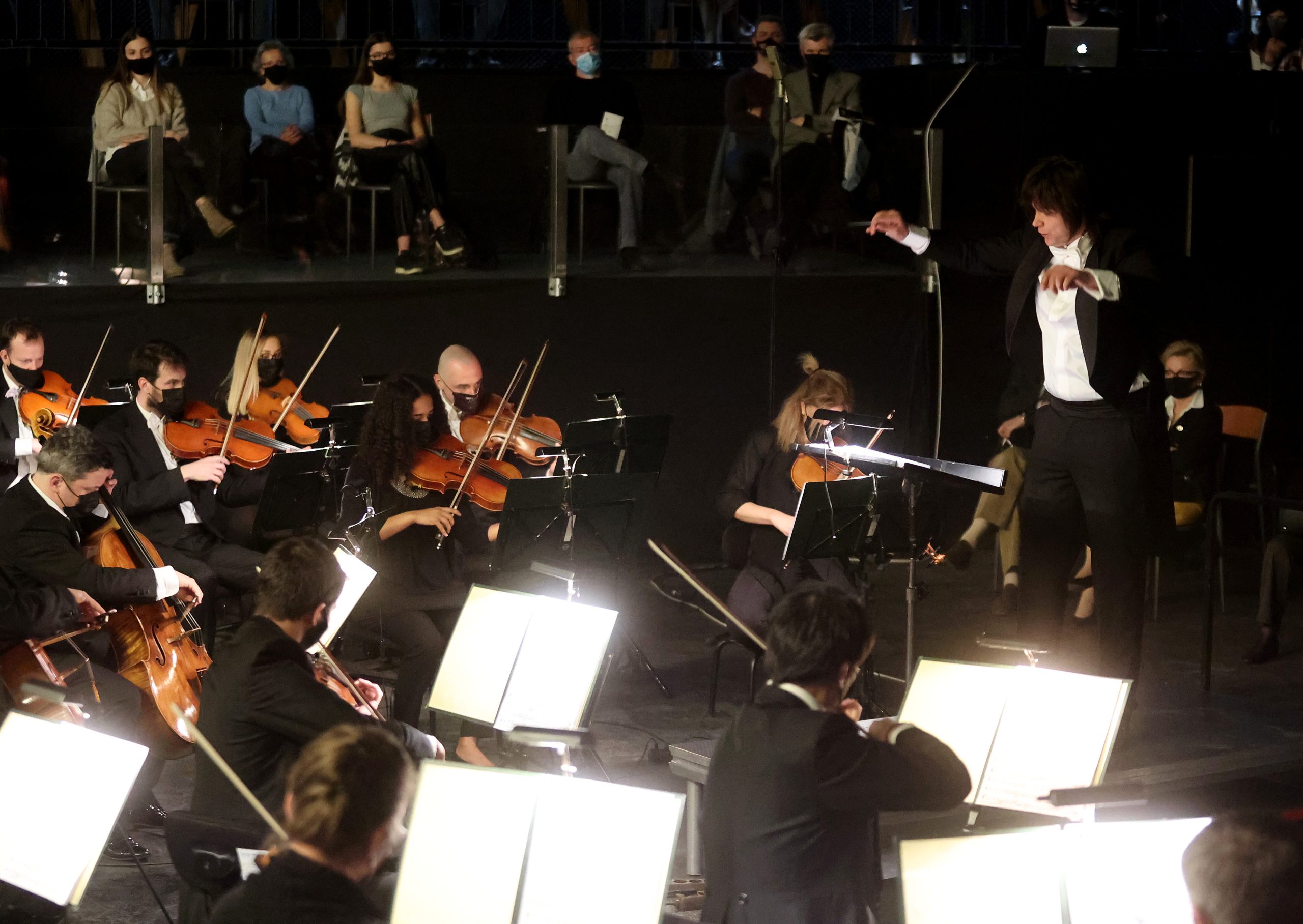 26.03.2021., Tvornica Kulture, Zagreb – Tvornica kulture ponovo je ugostila orkestar Zagrebacke filharmonije, koji je pod ravnanjem maestra Vetona Marevcija i uz solisticki nastup baritona Leona Kosavica izvoditi djela Georgea Friedricha Handela, Antonína Dvořáka i Franza Josepha Haydna.Photo: Marko Prpic/PIXSELL